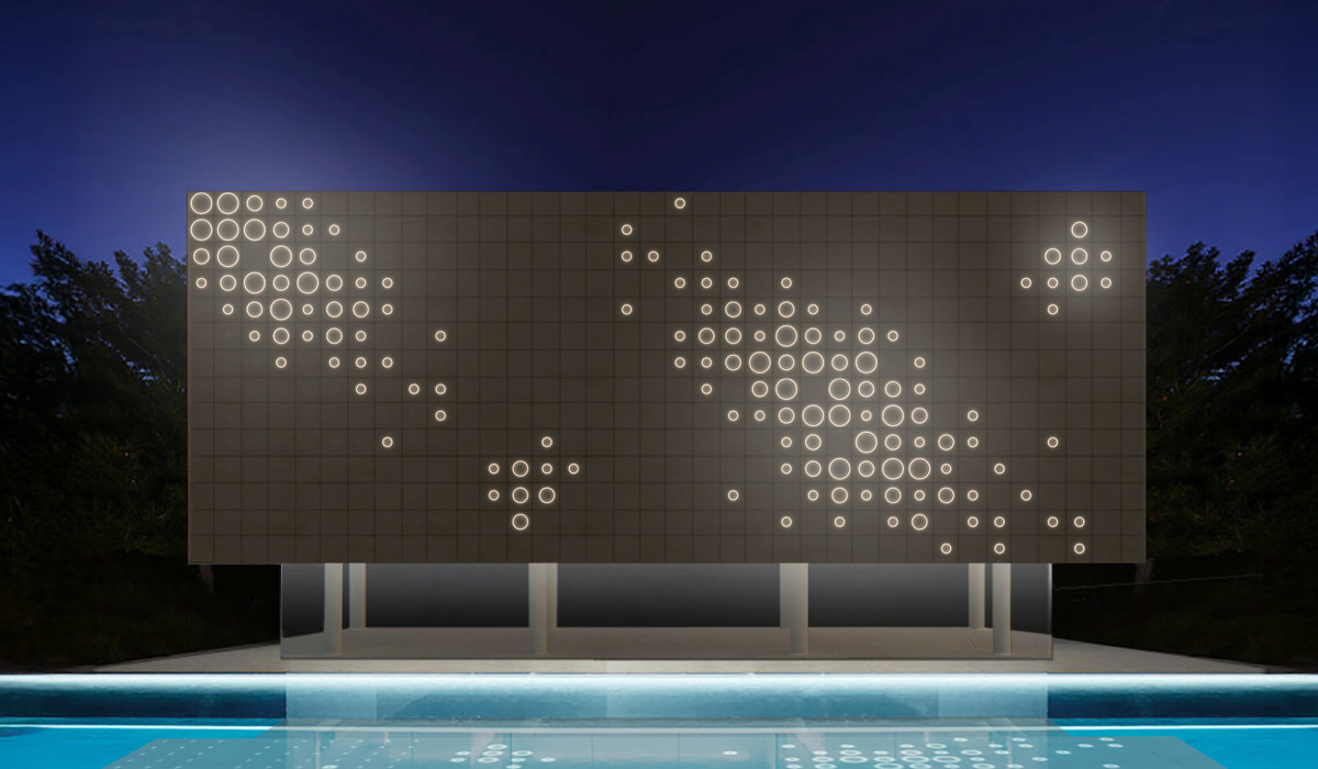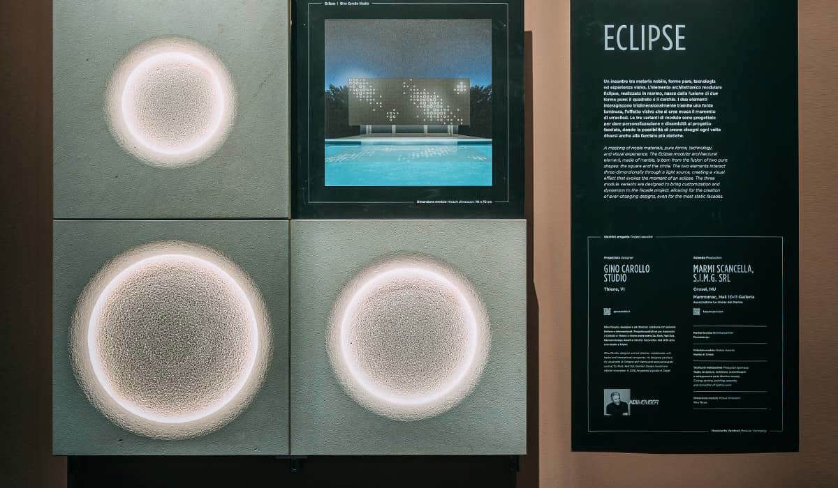 A meeting of noble materials, pure forms, technology, and visual experience. The Eclipse modular architectural element, made of marble, is born from the fusion of two pure shapes: the square and the circle. The two elements interact three-dimensionally through a light source, creating a visual effect that evokes the moment of an eclipse. The three module variants are designed to bring customization and dynamism to the façade project, allowing for the creation of ever-changing designs, even for the most static façades