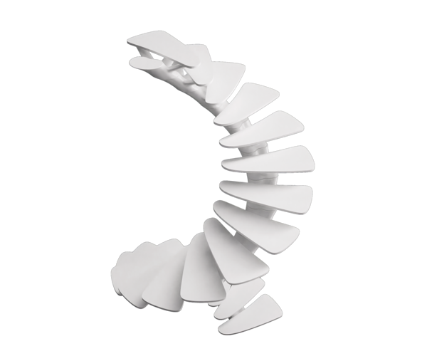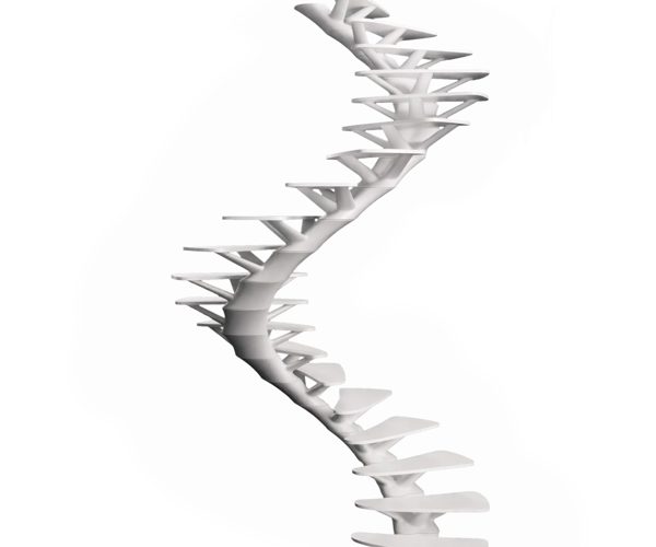In particular, the Osteomorphic Helicoidal Staircase is a spiral staircase with a load-bearing ramp and supporting steps, composed of prefabricated modular reinforced concrete elements and steps made of fibre-reinforced Apricena stone.