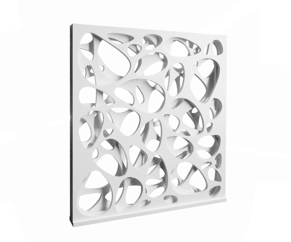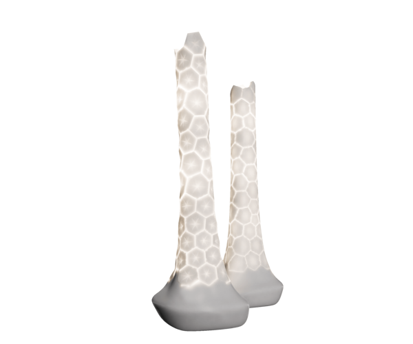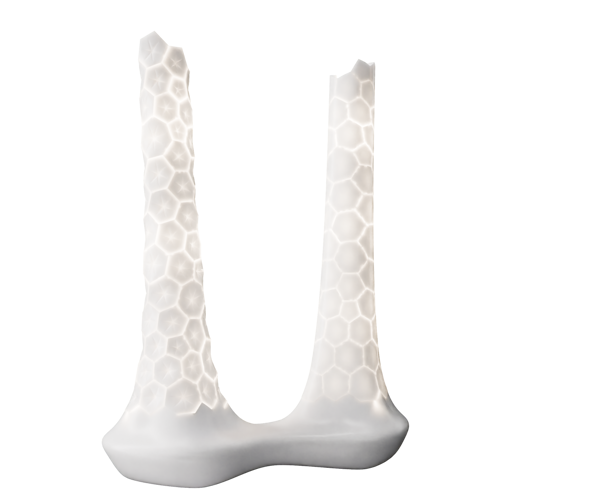 The conceptual project reproduces an approximation of the internal structure of bones—cancellous bone—as observed through scanning electron microscopy (SEM). Cancellous bone is located within the internal structure of bones, while compact bone forms the outer layer. Cancellous bone is characterised by honeycomb-like cellular structures that provide support and strength to the human skeleton.