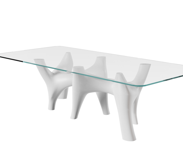 The complexity of the form requires specific CNC machining tools in order to extract the thin, double-curved shape of the table from a single block of white marble. Achieving such slenderness from a single block represents the true challenge of the work.