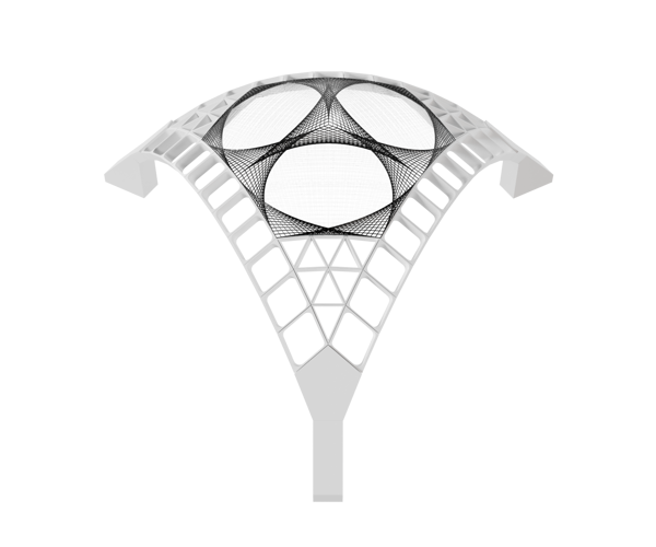 The project connects art, science and technology: alongside the artist’s creativity, concepts of geometry and fluid stereotomy, as well as advanced computer-based mechanisation, are required. These three research axes are metaphorically embodied in the three elements of the artwork, unified by a layer that weaves together what might be perceived as opposites into a harmonious whole.