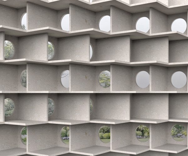 A module inspired and dedicated to the “Stalla del Modesto”, a historical architecture of the Lessini mountains, a spontaneous expression of rural architecture with the Pietra della Lessinia slabs that fit together. The hybridization of various interlocking architectural constructions, from stone ones to ancient wooden shelters made of logs to contemporary architectural research of “shelters”, is realized in this module. The optimization of production by exploiting cutting techniques is the basis of its characterization: the overlapping of the modules creates a multifaceted edge in the architecture.
