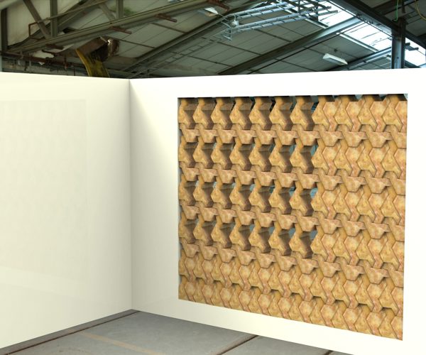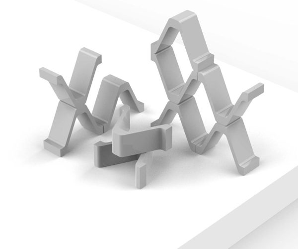 Hexagonlab is an experiment whose shape comes from a geometric elaboration of the equilateral triangle module of the regular hexagon to form broken lines that fit together. With the third dimension, the thickness of the material shapes a non-regular volumetric texture. It is a double experiment: