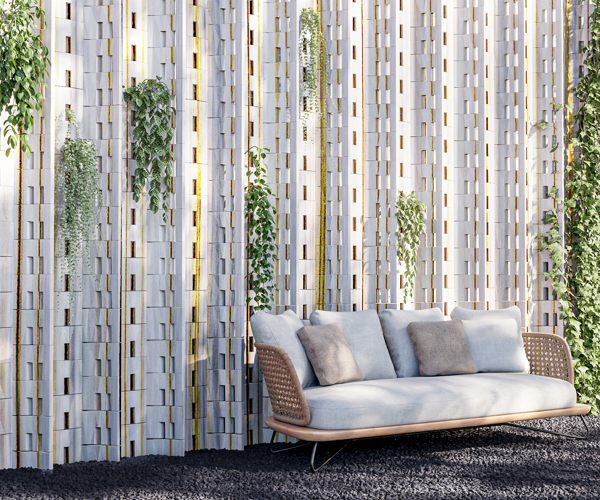 Trame di Marmo (Marble Wefts) is a module consisting of marble slabs arranged sequentially to simulate a moulded wire mesh. Its geometry is designed to combine the classic and strong aesthetics of marble with a modern and light approach, but also to be used on scrap and so minimise material waste. This concept represents an innovative interpretation of marble as a decorative material that ‘breathes’ and integrates with modern architecture.