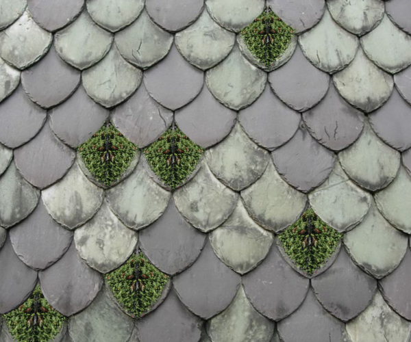 The Roofleaf tile project, as well as by assonance, is inspired by green roofs. Green roofs are a corner of nature in atypical contexts and help to improve the environment in which we live by cleaning the air. The tile module designed for this project is a leaf-shaped inspired and made of slate. It is worked with a slight milling suitable to hold seeds/ pollen/ spores of plants carried by the wind and to keep a light layer of water so that they can grow. The goal is to create a “natural effect” and spontaneous green roof through specially designed surfaces so that wind, water and plants work in synergy to create points of green in an atypical, organized and not “intensive” context.