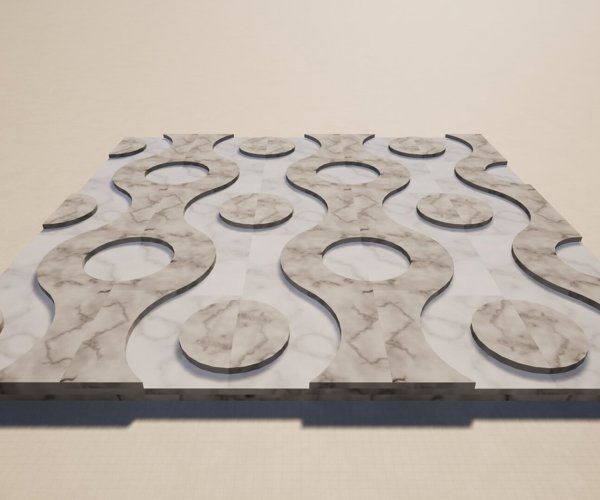 A) Flat version module composed of a mixture of small scraps of marble and lime to create a flooring tile.
