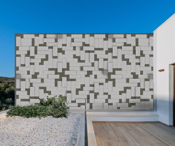 The “Bugnato Allegro” project draws inspiration from ancient Roman masonry works and later those of the Tuscan Renaissance, known as “bugne” or “bozze.” Historically, the “bugnato” protruded uniformly and could be conceived in various ways (gentle bugnato, smooth bugnato, rough bugnato), with the aim of conferring majesty to the facades of palaces and villas. The “Bugnato Allegro” project, on the other hand, aims to lighten the facades, allowing them to “breathe” thanks to its modularity. This design allows the passage of light breezes, isolating and cooling the exterior walls of buildings.