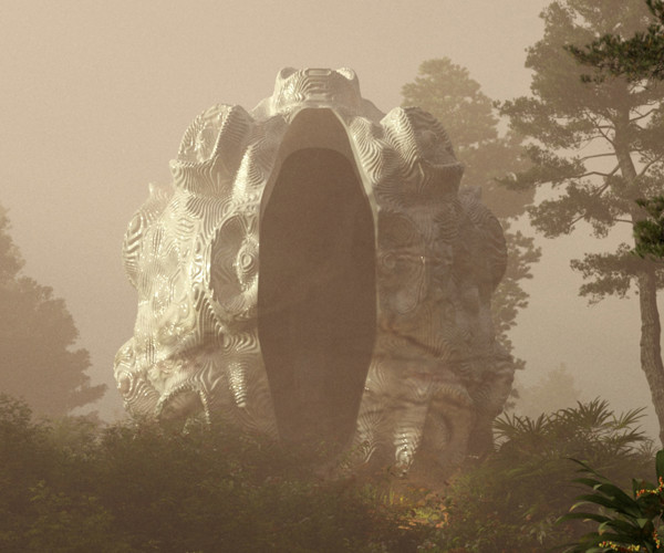 Omne Vivum takes inspiration from the cosmic egg-a mysterious, timeless object symbolizing the essence of creation. The project features a protective, intricate outer shell that contrasts with its seamless, soft, and embracing interior curvature, echoing the dual aesthetics of an egg or cocoon. The interior is a meditative space where you can withdraw from the outside world and immerse themselves in a timeless realm. This pavilion creates a sanctuary for introspection, symbolizing the universal essence of life and the cosmic egg’s role as a source of creation and connection.
