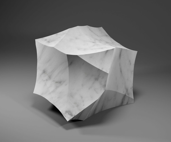 At the core of the project lies the Bolza surface, a mathematical object exhibiting the highest symmetry possible for a double torus. Representing its higher-dimensional structure and hyperbolic curvature as a physical object is fundamentally impossible. This impossibility is even exacerbated by the choice of marble as ultimate “pièce de résistance”. The marble is sliced along twelve parallel pairs of curves from six directions, leveraging the inner symmetries of the Bolza surface to close in on its essence and give the object its unique and characteristic shape. The gentle curvature of the inward cuts competes with an assumed ideal tessellation of the block, generating complex and unexpected shifts in edges and corners, and exposing more of the marble block’s interior, its inherent material history, its inclusions, imperfections and defects. The resulting object oscillates between expressing design choice, deliberate submission to rules, and engagement with material and production realities.