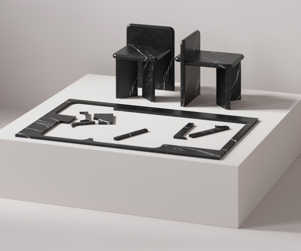 The close relationship between matter and the superfluous, expressed in Vasari’s quotation, defines the inseparable connection between solid and void, a fundamental concept of antithetical nature present in sculpture, architecture, and design. The experimental exhibition on lithic matter explores the relationship between solid and void in the era of new digital processing tools. The transition from manual action in the past to computer-controlled abrasive milling or cutting with diamond tools and waterjets nowadays offers new opportunities in terms of precision, technical reproducibility, and waste utilization. In light of these new possibilities, the participating authors freely explore the relationship between solid and void by producing an unprecedented series of marble works.