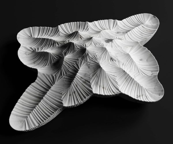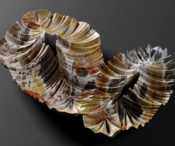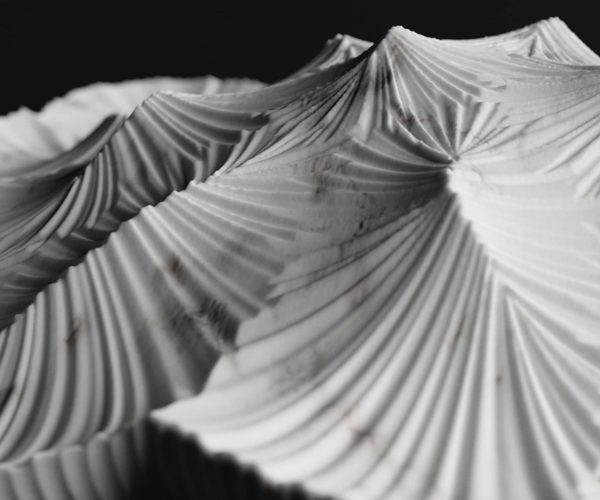 Pora è a metà tra l’ispirazione marina degli esoscheletri dei molluschi e le conformazioni legnose dei semi vegetali. Un’interpretazione litica delle affascinanti forme naturali tradotte in percorsi numerici e lavorazioni computerizzate del marmo.