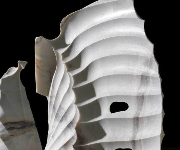 VISIONARY STONE è una mostra di opere artistiche in marmo progettate con l’uso di software parametrici e lavorate interamente con macchine a controllo numerico. L’esposizione è formata da nove sculture litiche ispirate alle forme naturali del regno animale e vegetale e guidate da logiche compositive come la simmetria, la filottassi, a metà tra il reperto fossile e l’esoscheletro spiaggiato degli animali marini. Una collezione visionaria che stimola il dibattito tra naturale e artificiale, alimentato da un nuovo linguaggio espressivo in cui la pietra incontra il digitale in un rapporto antitetico, tra materialità e immaterialità, tra robot e umano. Le pietre così lavorate, con fresature percettive, visive e tattili, di altissima precisione, invitano lo spettatore all’esperienza fisica attraverso l’espressione estetica di forte suggestione attrattiva e da significati che vanno ben oltre il mero esercizio tecnico.